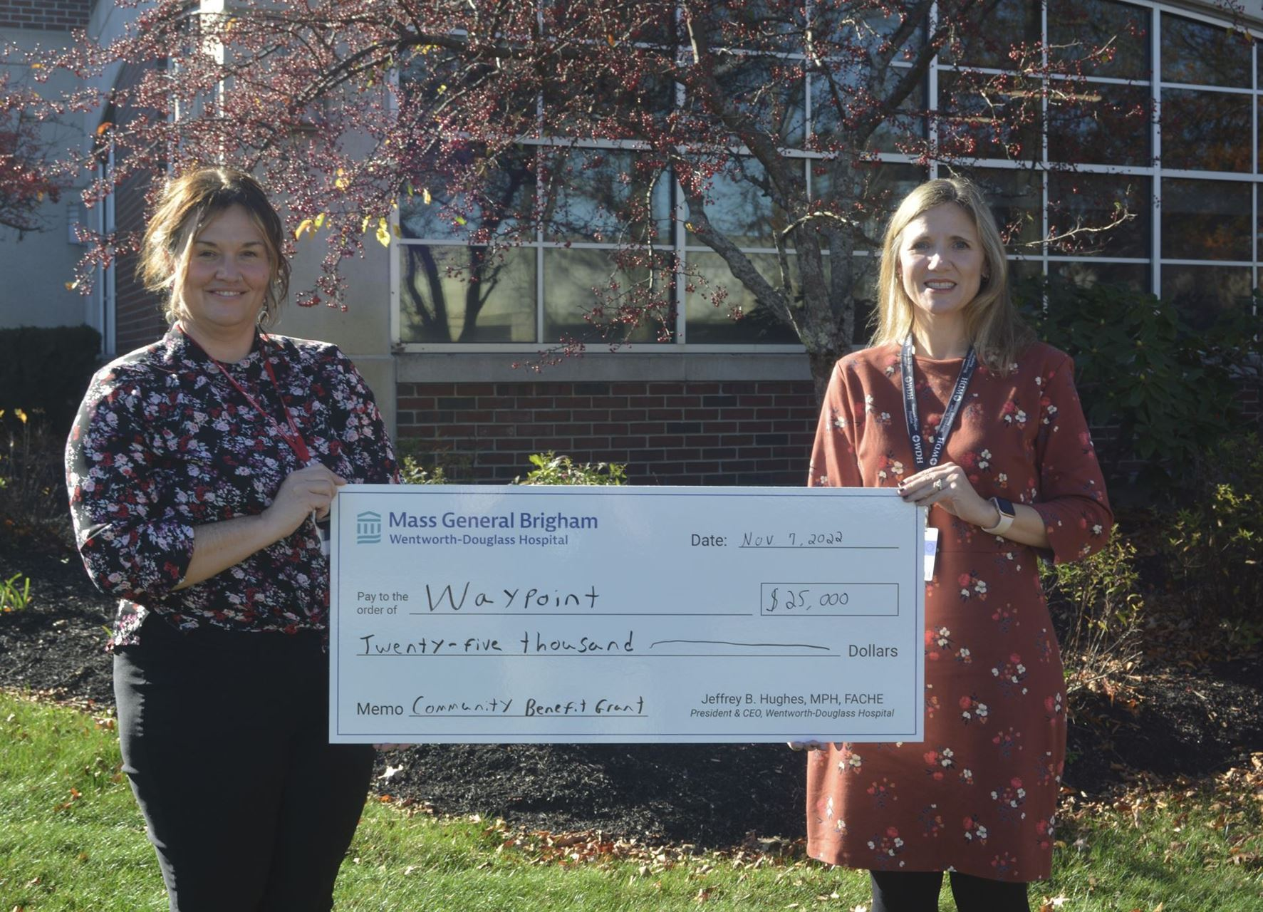 DOVER, NH –Wentworth-Douglass Hospital has awarded a $25,000 community benefit grant to Waypoint to assist in the creation of a Drop-In Center in Rochester, which will allow the nonprofit organization to reach more homeless youth in the Seacoast region.